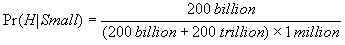 Note that Pr*(E | Small) = 1 and Pr*(E | ¬Small) = 1/1000. By substituting the above expressions it is then easy to verify that