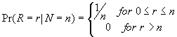 where R and N are random variables: N representing the total number of people that will have lived, and R the birth rank of the particular person doing the reasoning. I call this expression “D” because of its complicity in the Doomsday argument. It is responsible for supplying the premiss from which the conditional probabilities (of you having a particular birth rank given a hypothesis about the duration of the human species) are derived. Without this premiss, the Doomsday argument could not get off the ground.