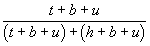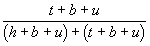 In an analogous fashion, using Pr(B|H) = b / (h + b + u) and Pr(B|¬H) = b / ( t + b + u), we get